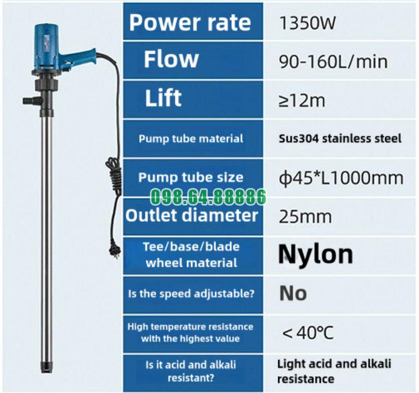 Sử dụng Bơm điện hút thùng phuy JDT-1350W-SUS304N để chuyển chất lỏng sang can nhỏ là giải pháp hiệu quả giúp chiết rót nhanh, an toàn và chính xác. Đây là lựa chọn phù hợp cho nhiều ứng dụng trong công nghiệp và sản xuất.