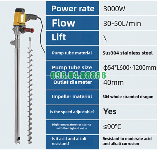 Bơm điện hút chất lỏng đặc từ thùng phuy inox JDT-3000W-YT