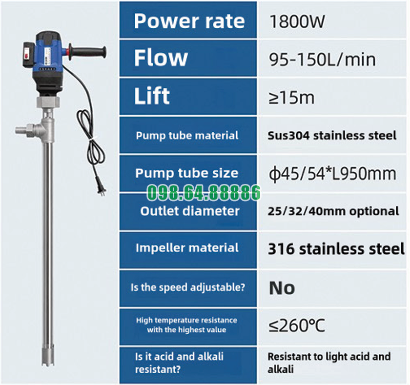 Sự linh hoạt trong nhiều môi trường của Bơm thùng phuy lỏng nhiệt độ cao JDT-1800W-G260