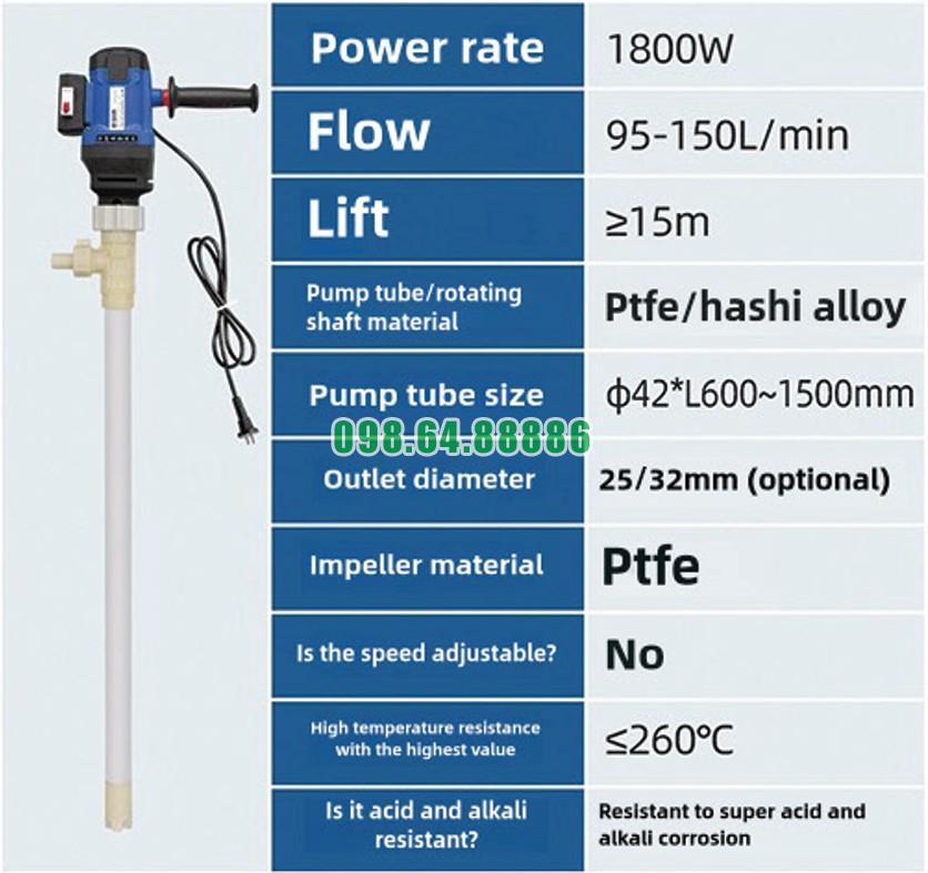 Để tối ưu hóa hiệu quả của Bơm điện thùng phuy 200L JDT-1800W-PTFE, cần kết hợp lắp đặt đúng kỹ thuật, sử dụng nguồn điện ổn định, lựa chọn dung dịch phù hợp và bảo trì định kỳ. Khi vận hành đúng cách, thiết bị sẽ phát huy tối đa công suất 1800W, duy trì lưu lượng 95–150L/phút ổn định và đảm bảo độ bền lâu dài trong môi trường công nghiệp khắc nghiệt.