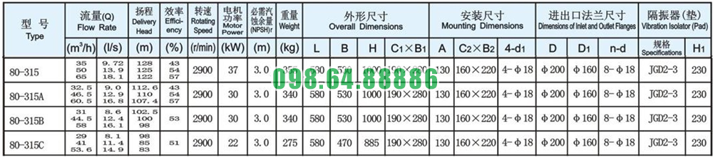 Máy bơm tăng áp trục đứng, bơm lùa, inline model ISG80-315, IRG80-315 37kw, 50m3, 125m